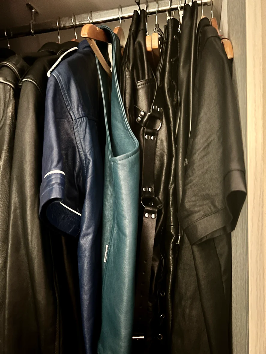 Leather Jackets, Jeans, Chaps, Shorts, Jocks, Shirts, harnesses, caps, gloves & leather boxer shorts. I think you will agree Daddy sure has plenty to choose from!